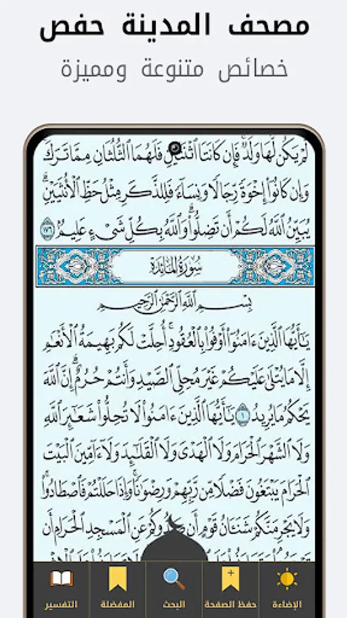 The Mushaf of Madinah Hafs is accompanied by the interpretation of the Qur’an, suitable for the verses of Hafs