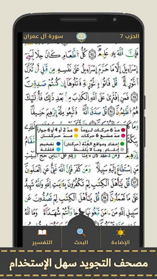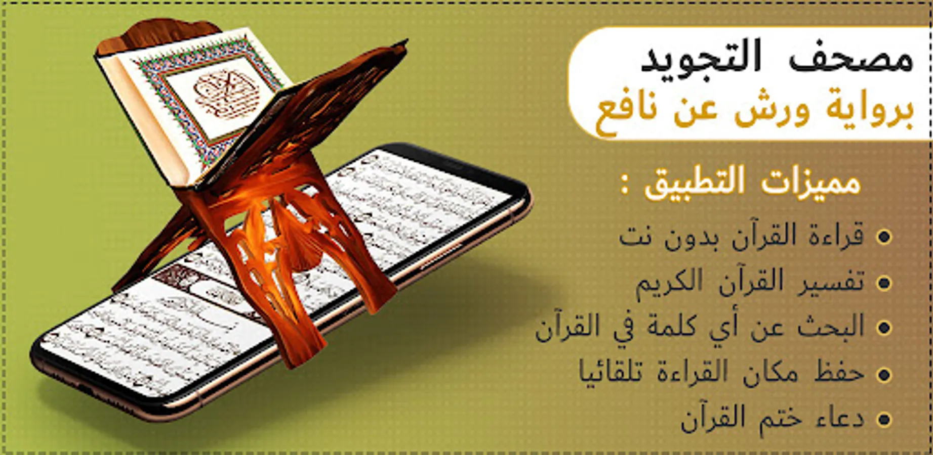 The Noble Qur’an in the narration of Warsh with the interpretation of the Qur’an is an application identical to the Holy Qur’an, the version of the colored Tajweed Quran with the interpretation of the narration of Warsh, this Holy Qur’an is written according to the narration of Warsh on the authority of Nafi`.