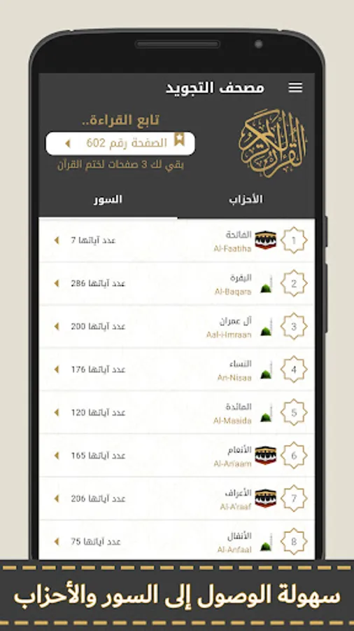 Index of the surahs of the Noble Qur’an Hafs arranged from Surat Al-Ala to Surat An-Nas