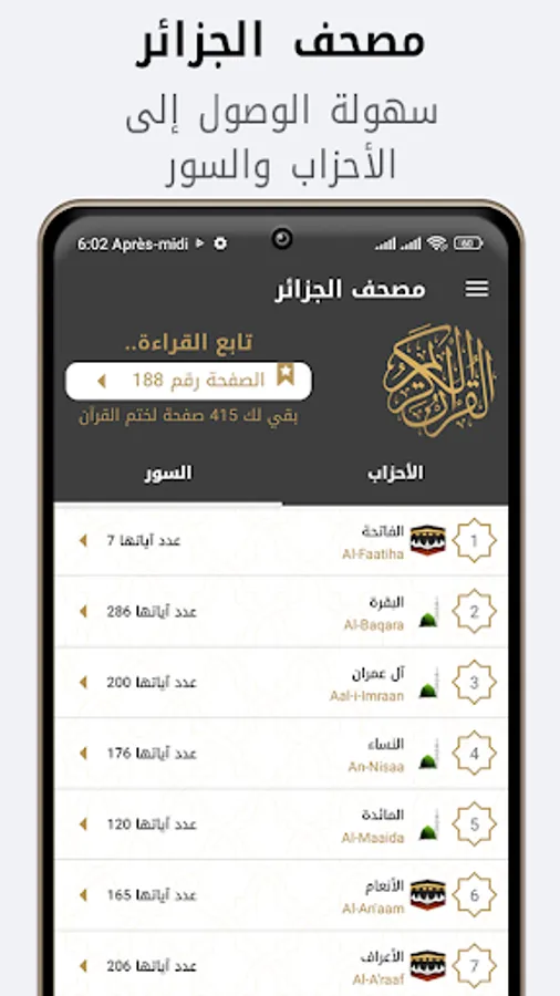 This application is identical to the paper version of the Quran of Algeria, Warsh with interpretation