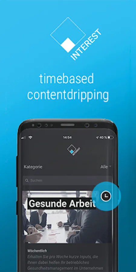 Interest is quick and easy access to people with content of any kind. Currently, we offer content in the categories Digital Leadership, My Better I, Sports, Innovation, Sales and Negotiation, Project and Process Management, Leisure, Leadership, Change, Health and Serenity, and Effectiveness. You have the possibility to stream this content via our app or to provide your own content.