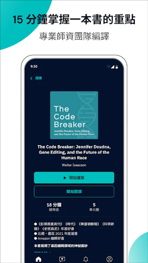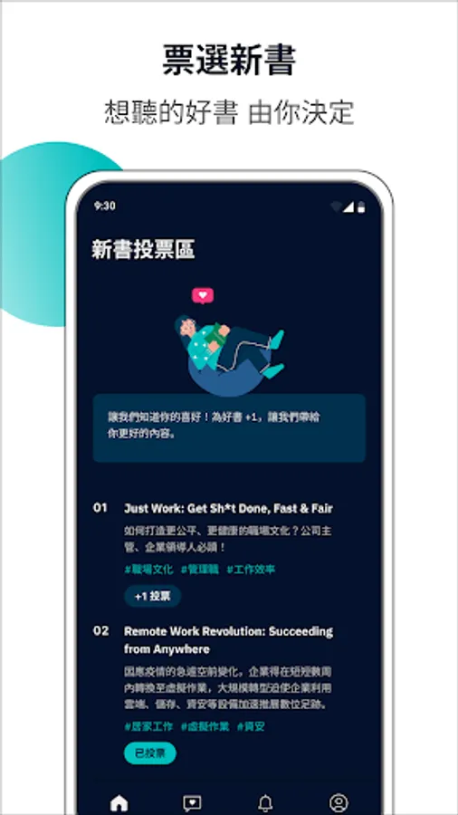We are your time-saving assistant! Whether you’re commuting, putting on makeup, or even before bed, you can listen to good books recommended by media celebrities such as The New York Times, Time Magazine, Bill Gates, etc., and grasp the essence of good books in just 15 minutes. Not only can you cultivate cross-disciplinary interests, but you can also show your professionalism in front of customers and supervisors. What’s even better is that every month you can vote for new books that interest you and learn and grow with other high-level talents.
