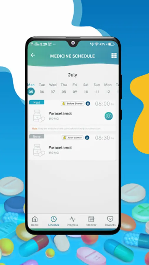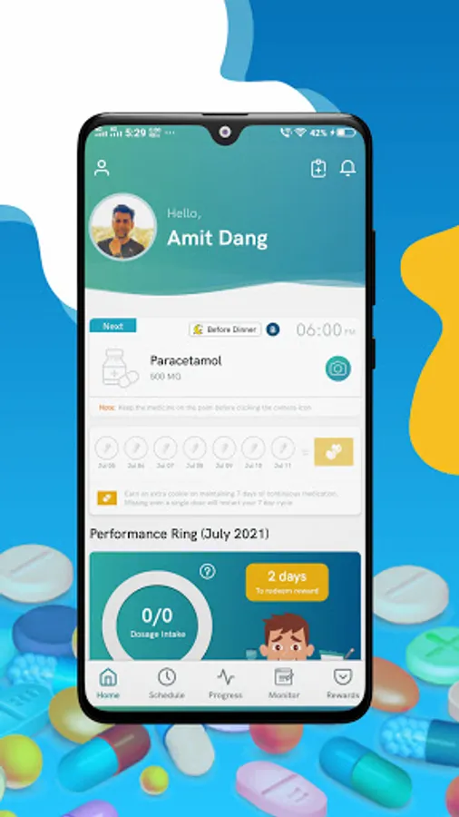 • Virtual rewards for maintaining minimum adherence score on monthly/weekly basis