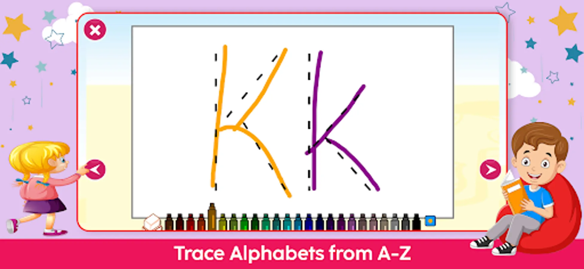 Beginning with kindergarten learning games the alphabet where an animal initiating with the alphabet appears to be on the screen of kindergarten with the pronunciation of its name & spelling. Then comes the tracing part of games for kids. It seems just like you do it on paper.