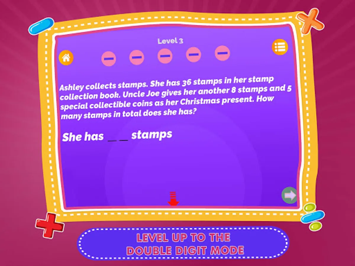 This math story problem app strives for a step by step approach to build up your child’s confidence, motivation and help him with math story problems. A child is not mentally ready to absorb all at once and execute it perfectly at the same time. They need time to understand, think and allow their mind to follow their own personal strategy to learn things their way. It focuses on addition and subtraction word problems by degrees and they will never get bored with learning math. The quizzes and word problem for kids are based on day to day activities to maintain your child’s interest and if they would find fun in learning, focus is imperative. It goes like 1-digit, 2-digits, 3-digits and 4-digits problems for additions and subtractions which would strengthen their previous concept along with introducing the new one. Practice makes a man perfect and yes Math is what demands practice not verbal learning. You memorize it through practice and we are well aware of this fact. Your child would be attempting practice questions, fun math word problems for kids through numbers, activities or quizzes once ascending the learning phase. It also has various mathematics problem solving games and math story problems to review what is learned in the most fun way.