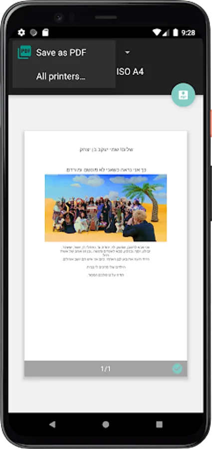 If the device allows it, the widget connects directly to the printer and prints the remote on a standard-size page. If the device is not connected to the printer or is unable to print directly to the printer, you can switch to save as file mode, and share the file using another widget (such as Signal, WhatsApp, or E-mail).