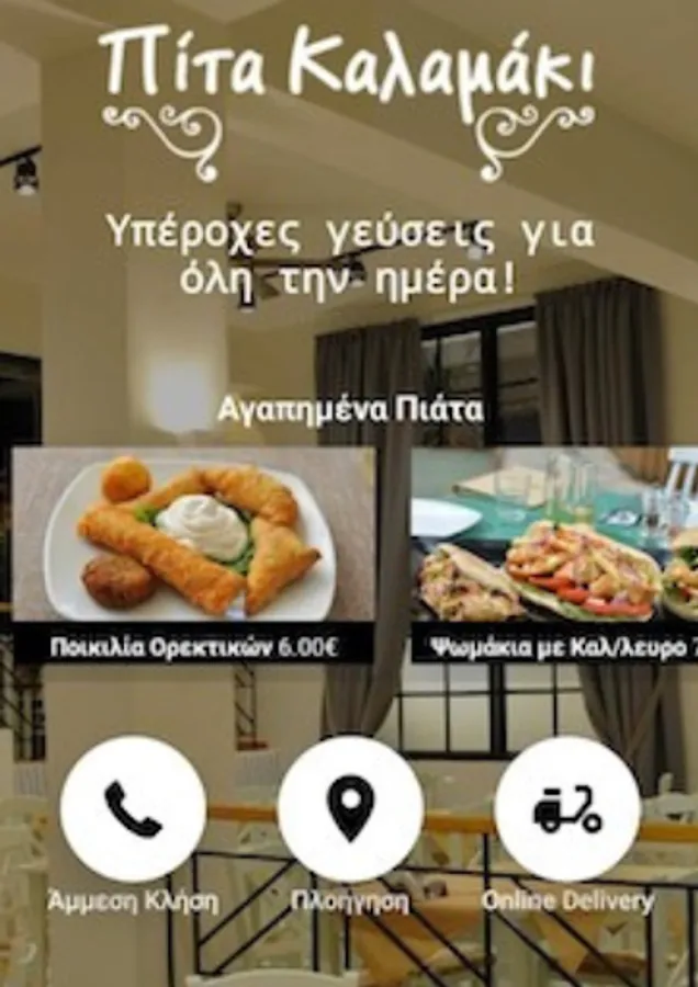 Communication display application and ordering service of the Pita Kalamaki steakhouse in Aegaleo, through the Online system of the thelosouvlakia.gr platform