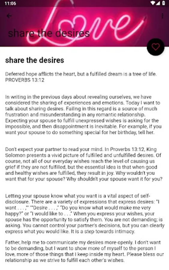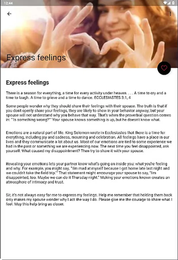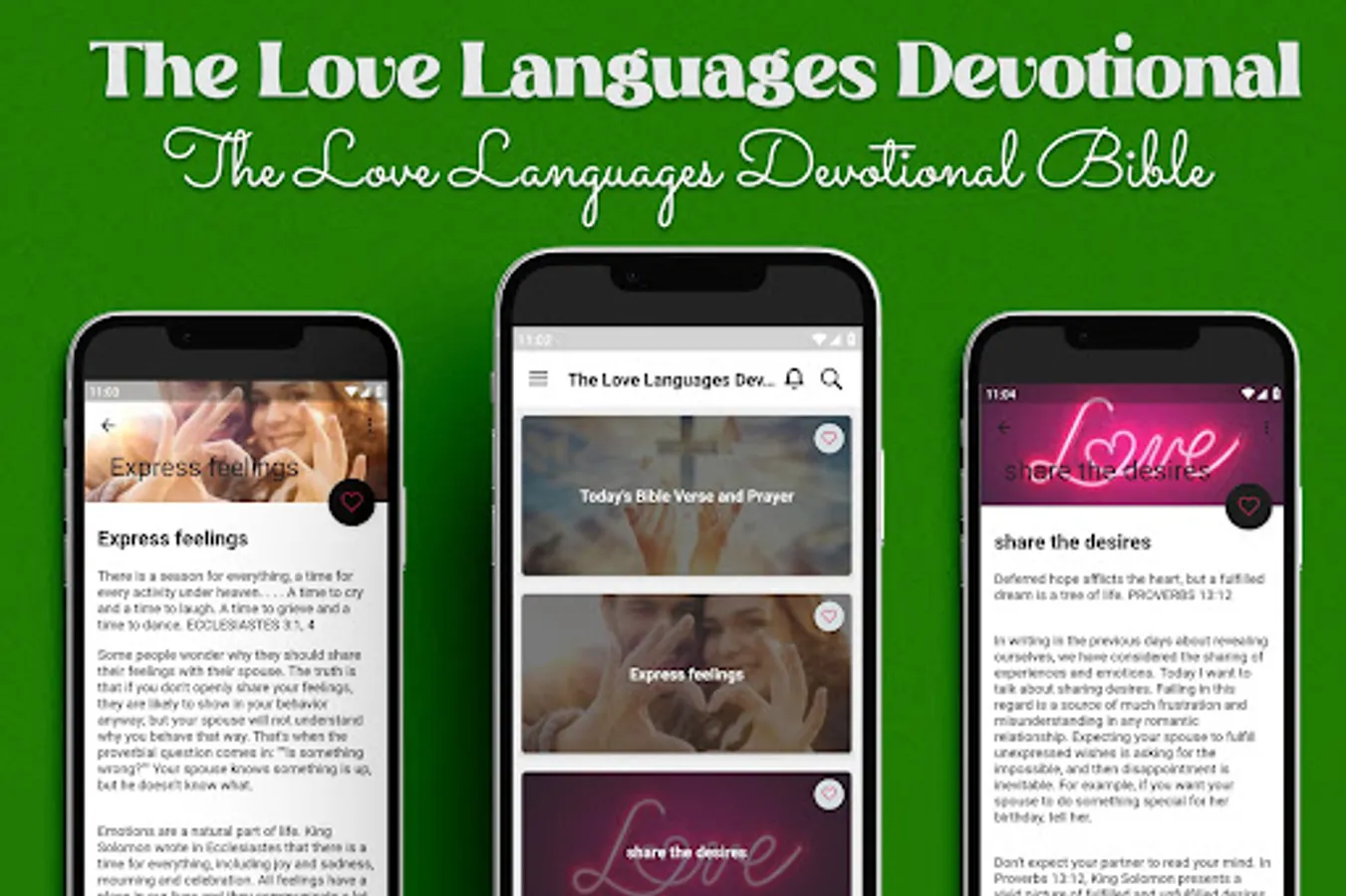 The Love Languages Devotional helps couples cultivate unity and true intimacy in their relationships. In just under 2 minutes we have advice on how to express your love to your partner, including what to say, what to do, and what to share with your partner in hopes of developing closer bonds with your spouse.