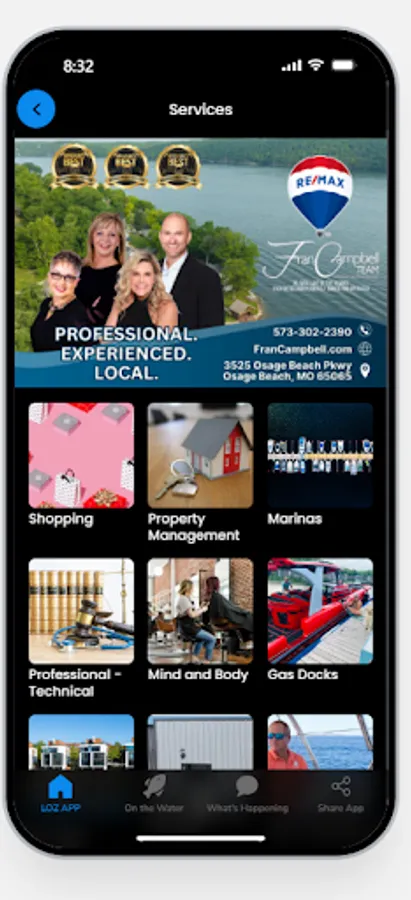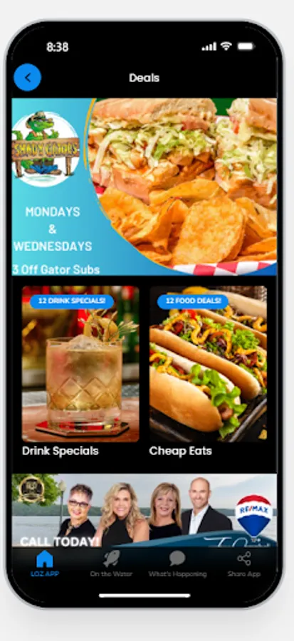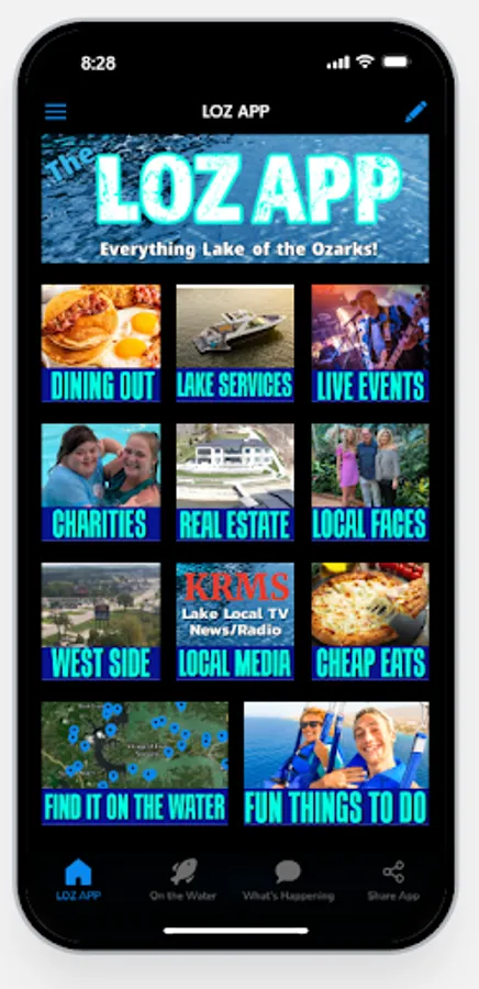 The LOZ App is the ultimate guide for both locals and visitors alike! The LOZ App is the perfect tool for navigating the Lake of the Ozarks area. LOZ App has everything you need to find information about local restaurants, marinas, shopping, and events. LOZ App also helps you find local deals, coupons and even employment opportunities! You can find everything you need while on the water with the LOZ App “On The Water” feature, showing you nearby marinas, restaurants/bars and gas docks all while on the water! The LOZ App also features some of the areas most reputable service providers such as real estate agents, boat dealers, home service providers, and boat service providers. The LOZ App is free. We just ask that you support your local LOZ businesses whenever possible. Enjoy!