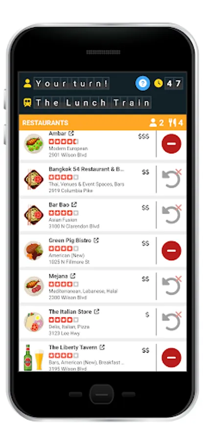 - Add restaurants you're interested in, invite your friends, and play the game!