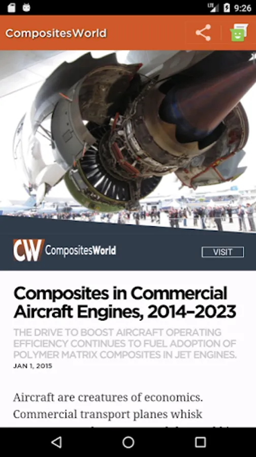CompositesWorld (CW) is a team of editors and writers that publish technical articles and other content to keep you abreast of the global composites manufacturing community—focusing on the software, materials and equipment used to design, tool, fabricate and finish composite parts and structures. Primary end markets served include aerospace, automotive, wind, marine, consumer, industrial and infrastructure. The CW app features plant tours, manufacturing reports, design stories, news and more from the CW staff, covering the full breadth of the composites industry.