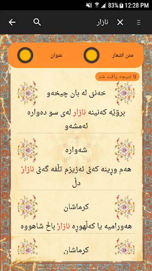 - Search the text and title of the lyrics by distinguishing the results found