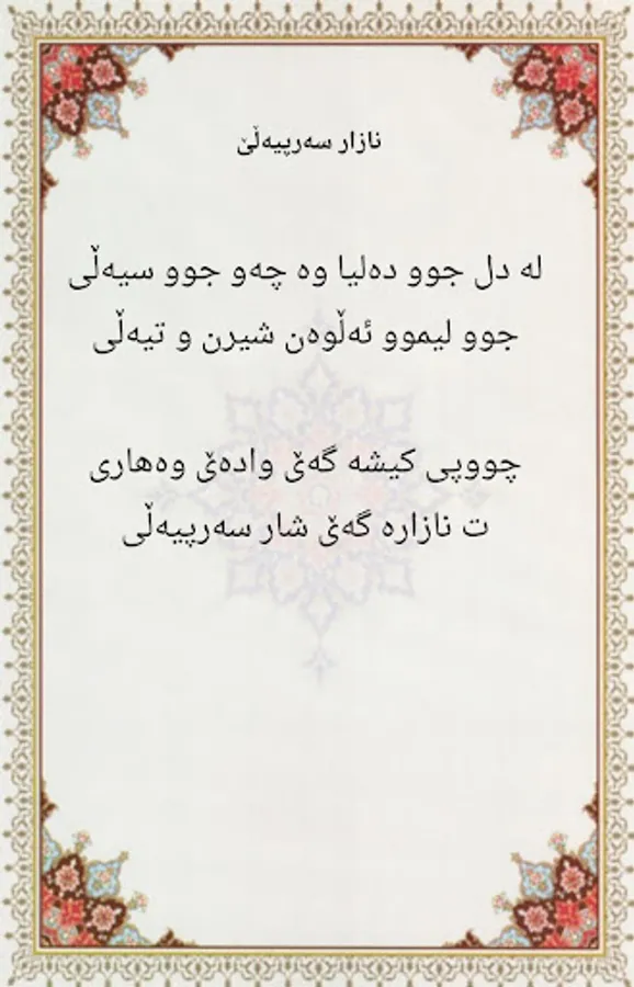 Garmeh Shin is a collection of the most prominent contemporary Kalhorian Kurdish poems by Ali Al-Fati. This work is the result of 12 years of thought, effort and love for the revival of Kurdish customs, which has been reprinted four times so far, and the fifth edition has been provided as an e-book to the lovers of this work.