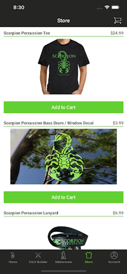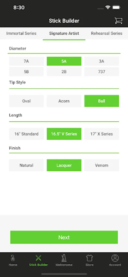 Conveniently order Immortal Series drumsticks from Scorpion Percussion via the world's first application-based drumstick builder. Build your own model of drumstick via Scorpion Percussion's production process using Immortal Series standards. Keep track of the stick count in your bag, practice your chops using our metronome, check out other Scorpion Percussion artists, or pick up some merchandise. This app also has real-time production tracking where Signature Artists can see where their order is in the production pipeline; in REAL TIME!