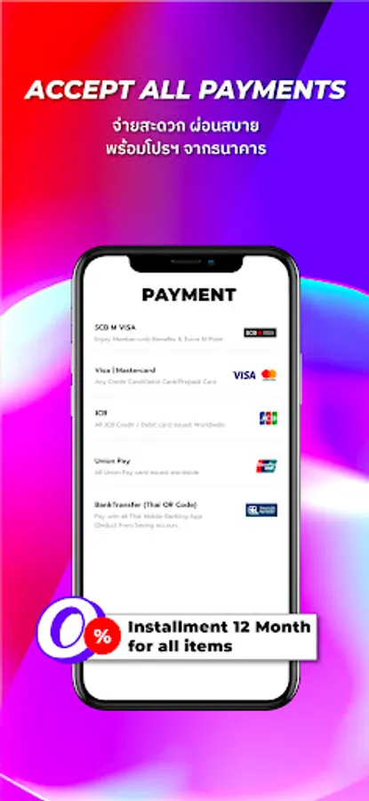 ✅ A variety of available payment option, VISA, Master Card, Union Pay, JCB or choose to pay in 0% installments for up to 12 months, or Bank transfer using QR Prompt Pay via any mobile banking applications.