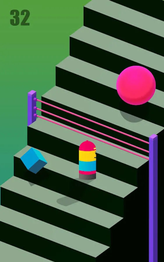 Climb the stairs while dodging the various shapes and objects that are tumbling down at break neck speed. You have the ability to move left, right and upwards, hopping as you go and navigating the perils and danger that surrounds you.