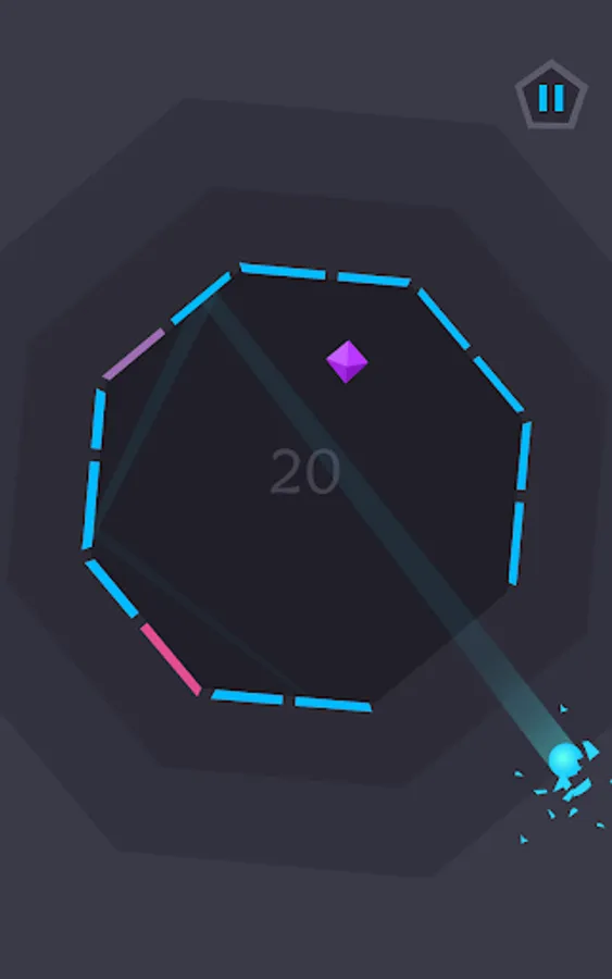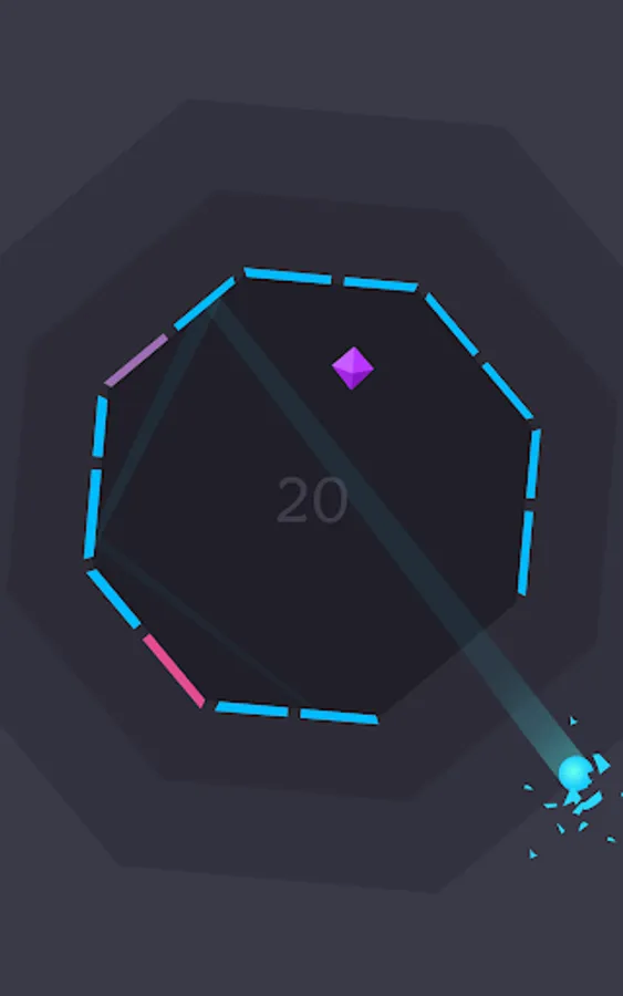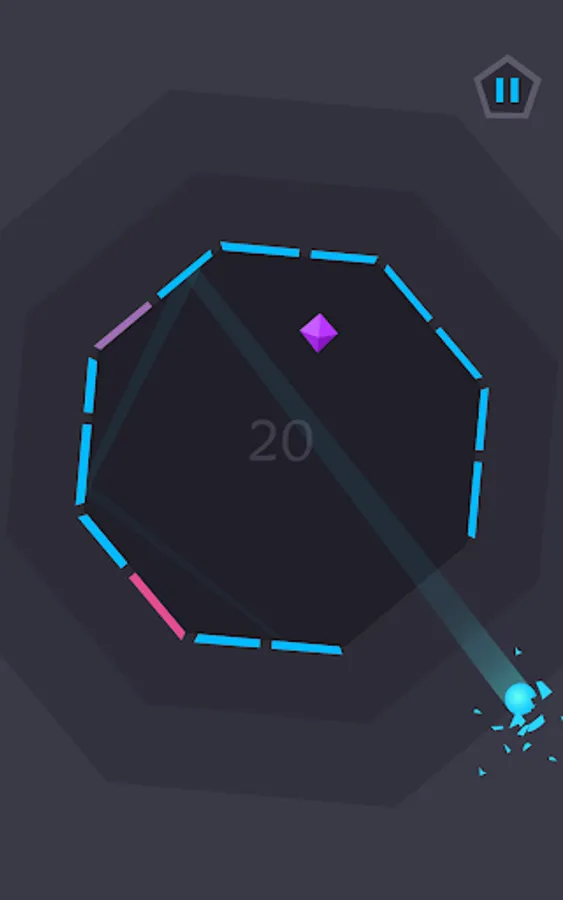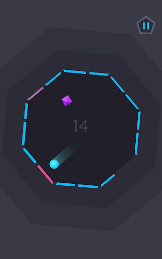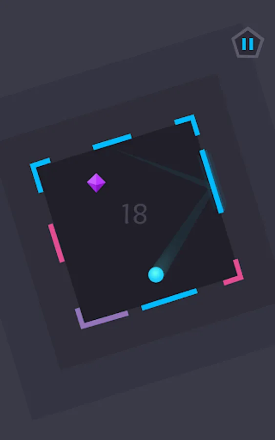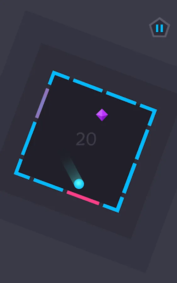 The aim is to keep the ball in play for as long as possible as it bounces around inside a large shape, which is made up of any number of walls. By tilting your phone, you are able to rotate the shape and manipulate the movement of the ball to avoid hazards and collect rubies. The challenge is to ensure none of the outer walls disappear; when they start flashing it’s high time to bounce the ball off them! Otherwise you’ll have a tough time keeping the ball in play...