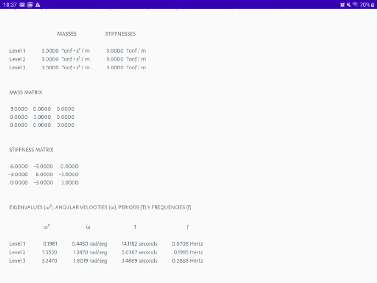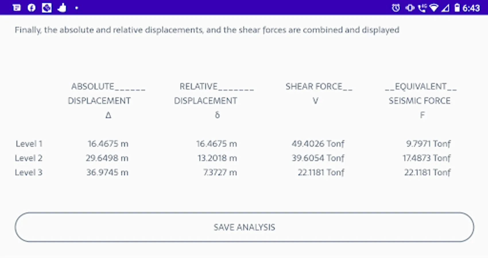 Mass and stiffness of each level must be entered, and so the spectral acceleration for each Mode Shape. You also have the option to save the analysis in a text file for later editing in a spreadsheet if desired.