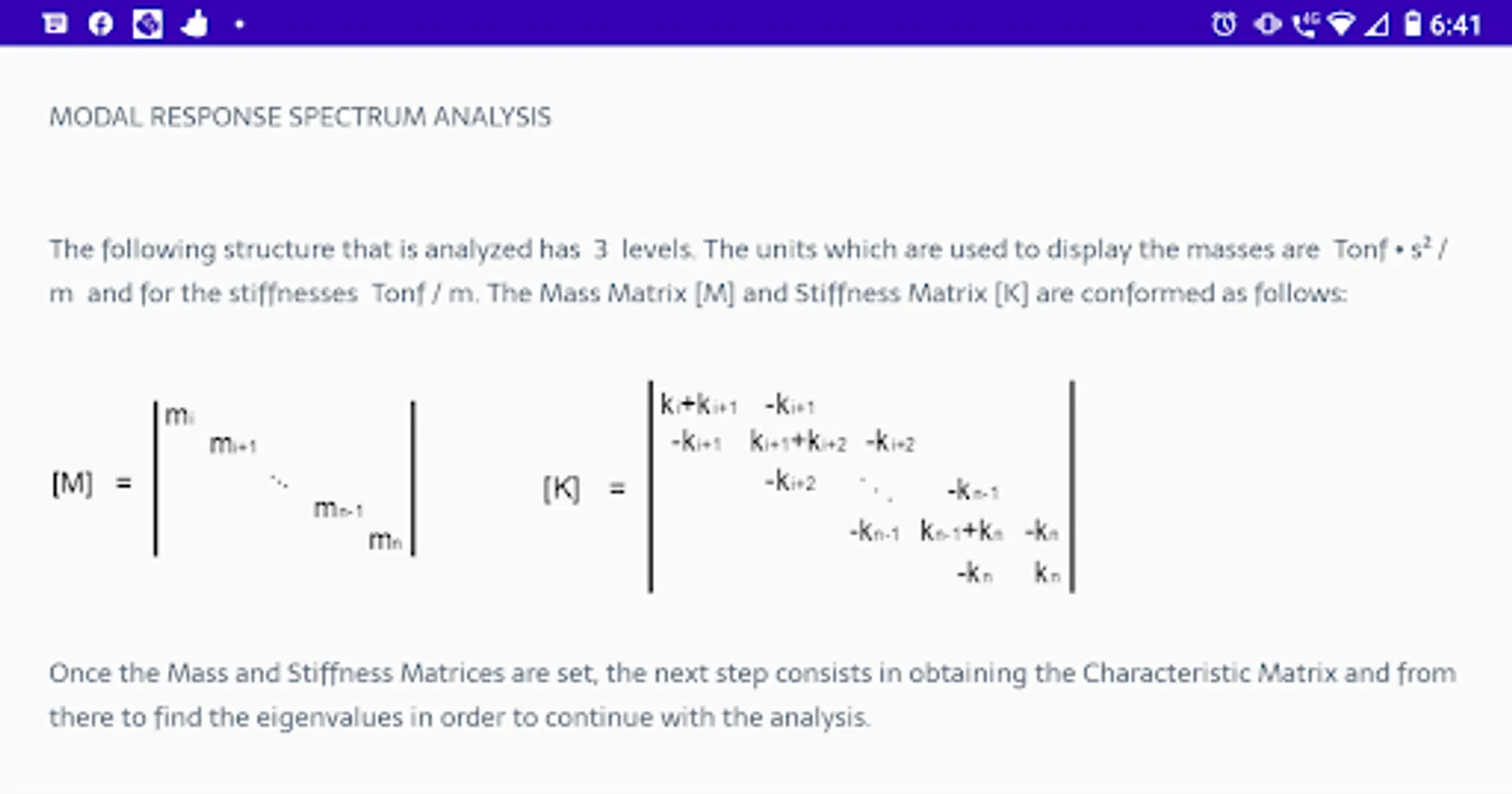 This DEMO application (Requires Internet Conecction) is a method of checking and teaching the Modal Spectrum Response Analysis in a detailed manner with precise results, breaking down the following: