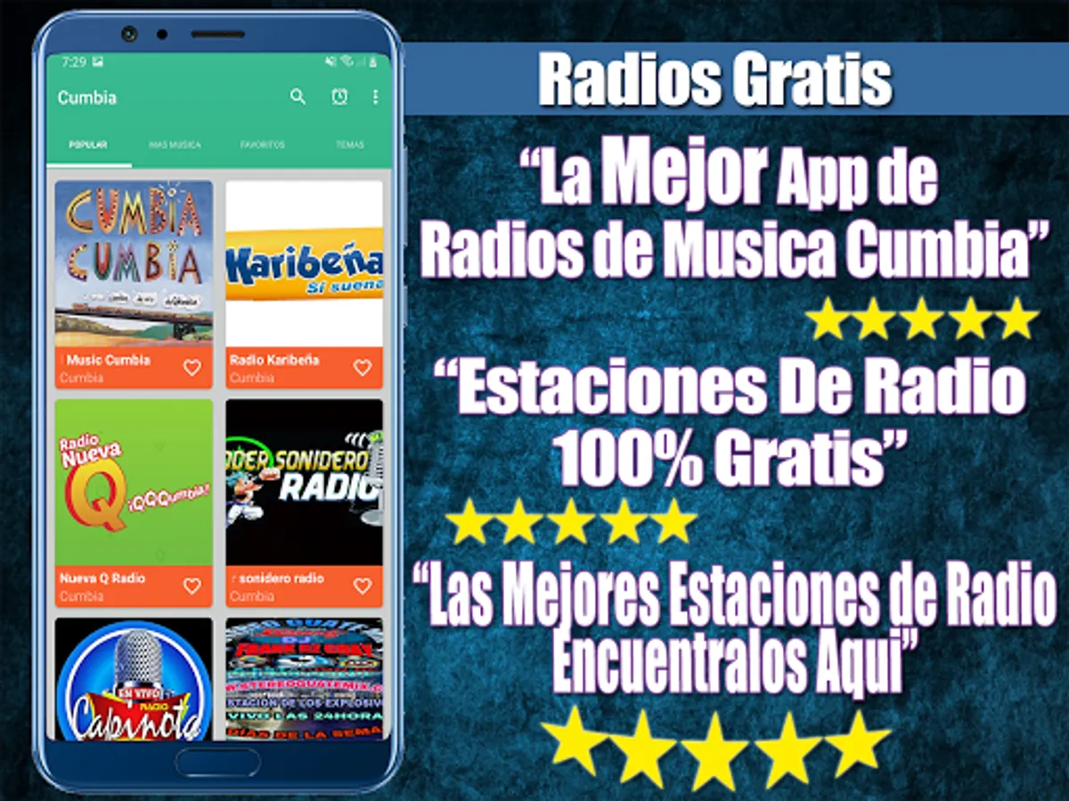 Have fun with your favorite music and your programs no matter where you are, from your Android! Access any of the Cumbias Radios and Radio Cumbia Music Stations and news completely FREE, Available Now FREE on Google Play Store.