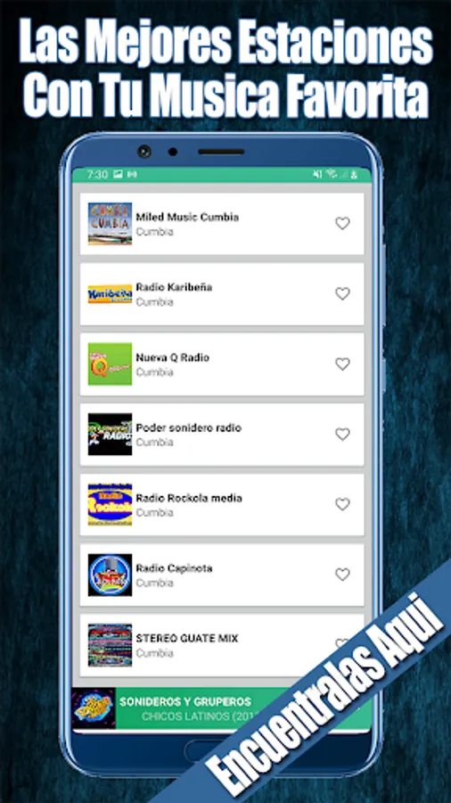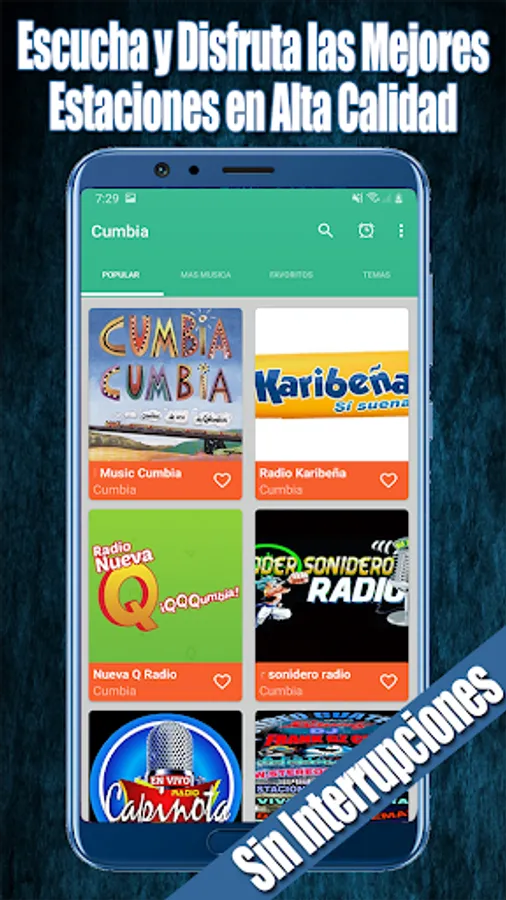With this mobile application you can listen to Musica Cumbias Online from your cell phone in a simple way,