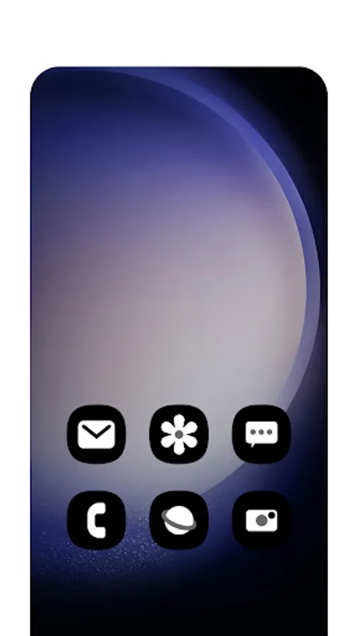 Applying Icon pack is as easy as few clicks; just pick your launcher from the list of launchers and icon pack will be applied on that launcher. Other launchers which support icon packs can also apply Galaxy S25 Dark Theme from settings menu of the launcher which is usually accessed by long pressing on your home screen. Use launcher's theme settings to apply the theme.