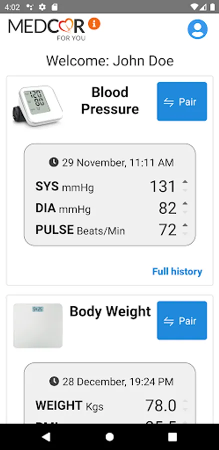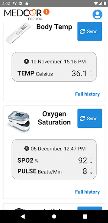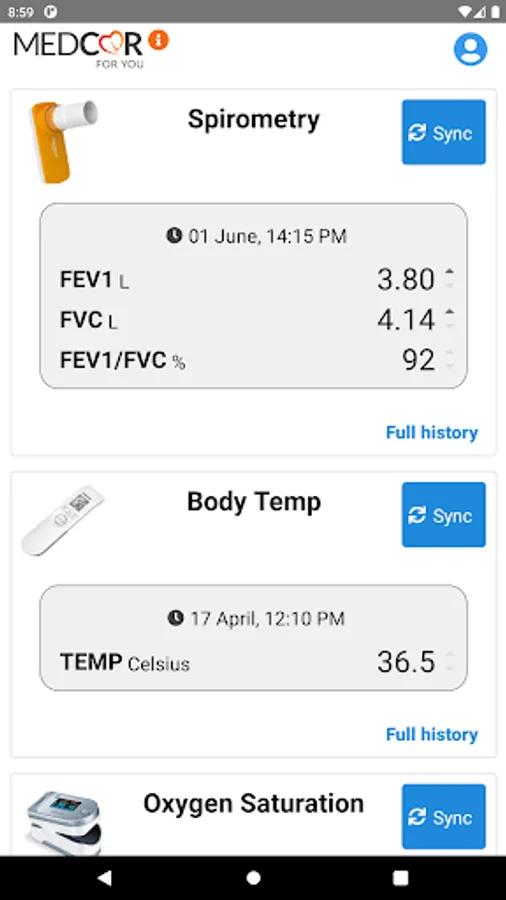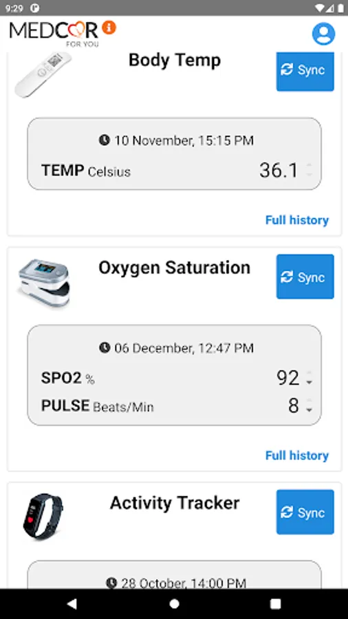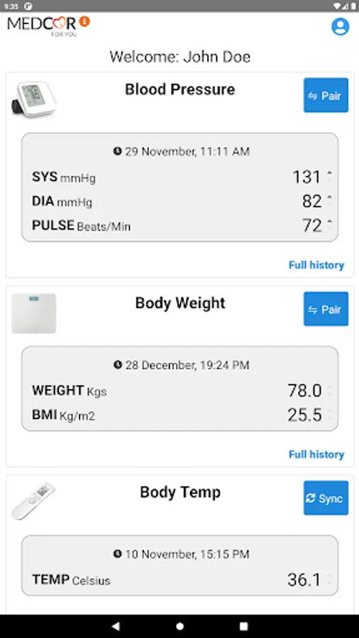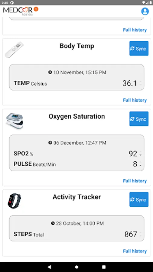 MedCor4U App allows you to sync all your vital readings from the devices (via Bluetooth) straight to your hospital and healthcare provider systems, allowing them to monitor and access your readings.