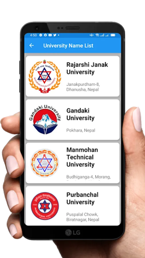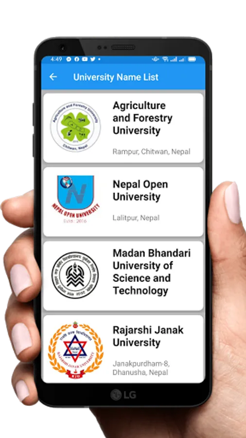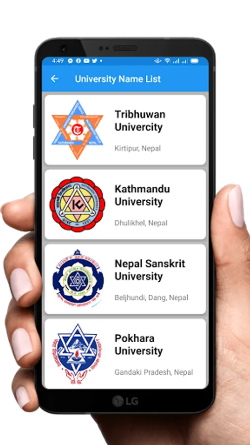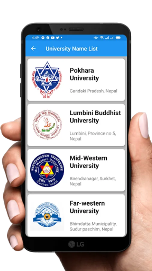 This app has been especially designed for all the users who want to get more and more information about Universities and colleges situated in Nepal. All the contents adorned by this app are from many Nepali universities and colleges of Nepal. We make attempts to add more information about university and college in the days to come.