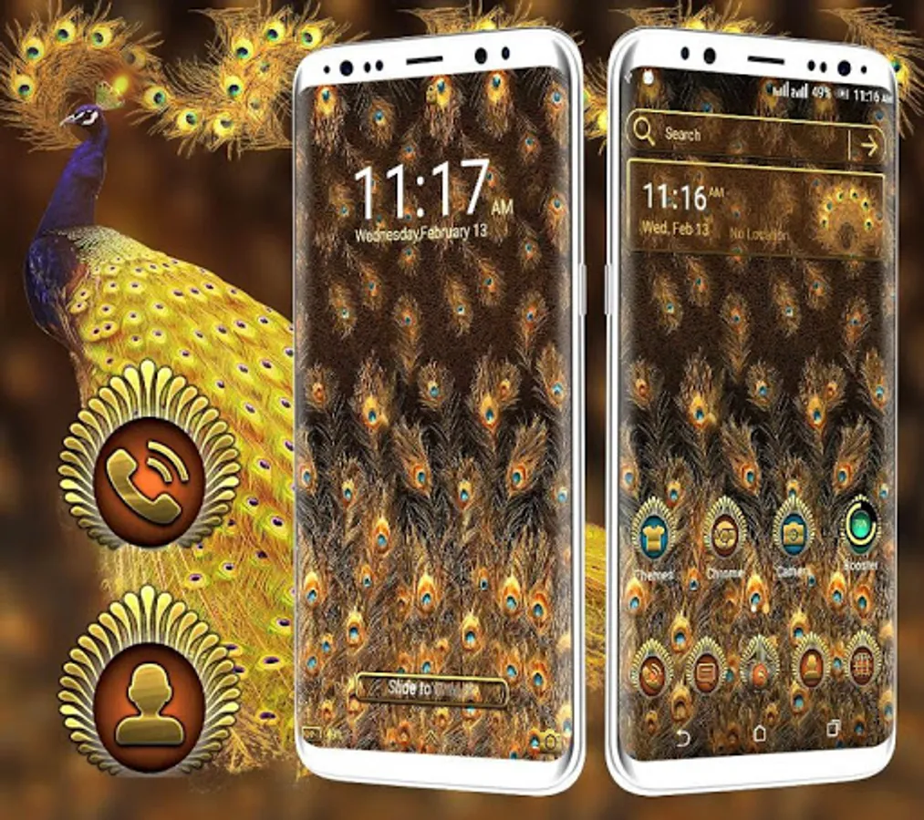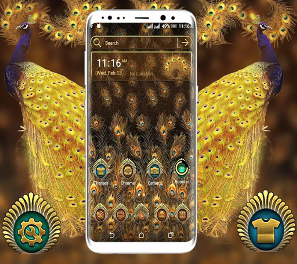 Golden Peacock Feather Launcher Theme is designed to decorate your Android phone with Feather HD Wallpaper & customized icons. Golden Feather theme is designed for those who love Feather. This Beautiful Launcher theme has highly customized icon packs and also contains HD Feather Wallpaper.