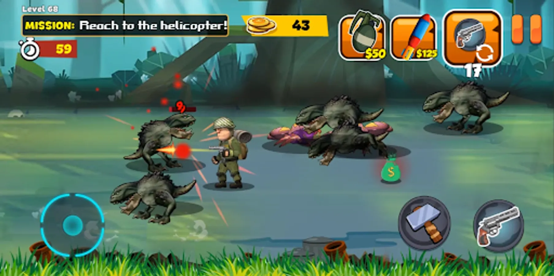 Save yourself from the monster attacks. Use the hammer and weapons and shoot the monsters until helicopter comes. Collect as many coins as possible to upgrade your weapon so you can defeat enemies more easily.