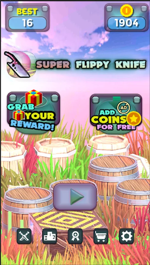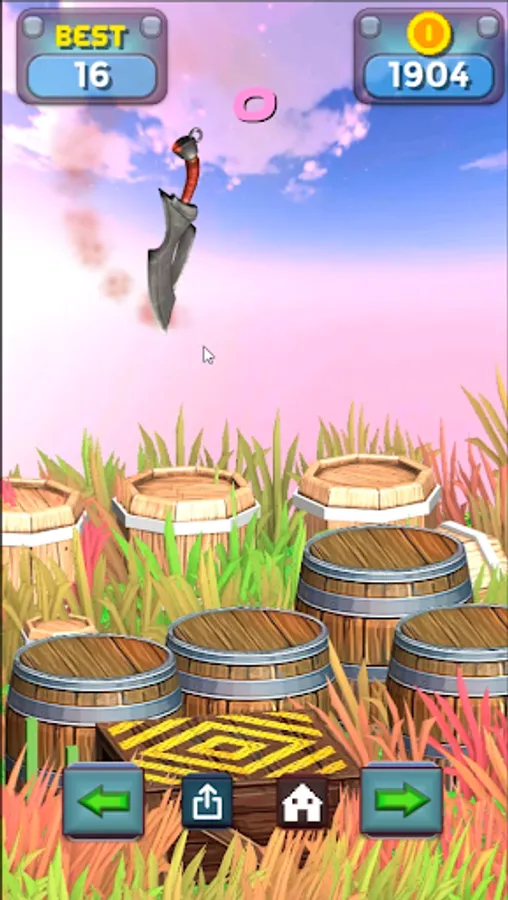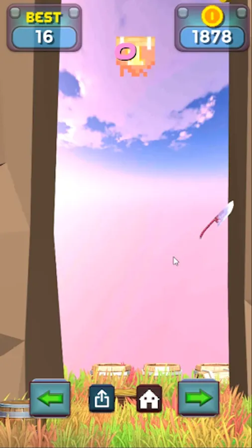 Super Flippy knife is a casual game that you can play for killing the time. it has a beatidul gameplay. as you can see you can choose the blade / knife with various effect . you can get them by collect the coin.
