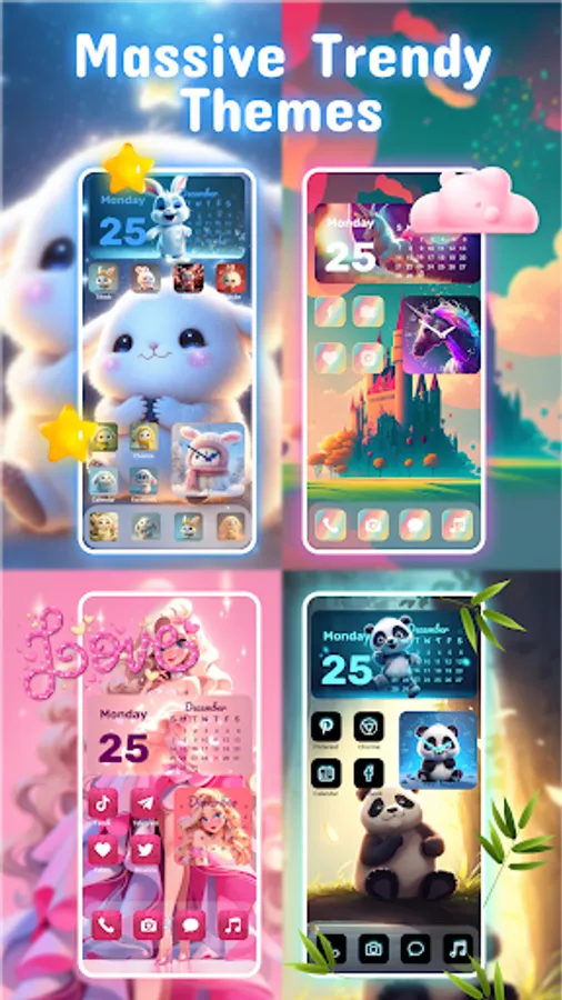 Lively Themes: Immerse yourself in lively themes with neon effects or cute styles that bring your phone to life. Enjoy dynamic backgrounds, animated icons, and interactive themes that make your phone usage more engaging and enjoyable.