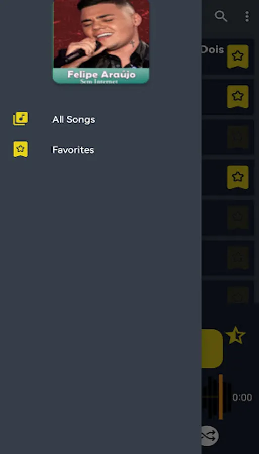 Recursos do aplicativo de músicas de Felipe Araújo: