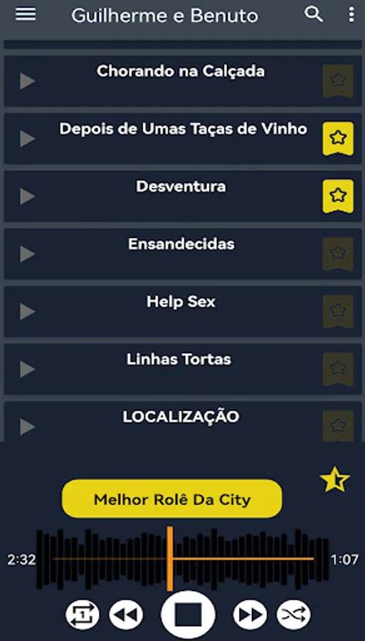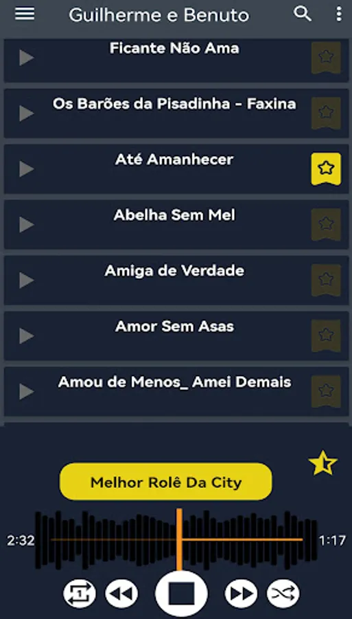 Recursos do aplicativo de músicas de Guilherme e Benuto: