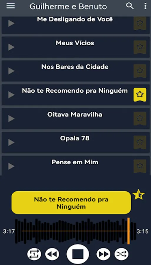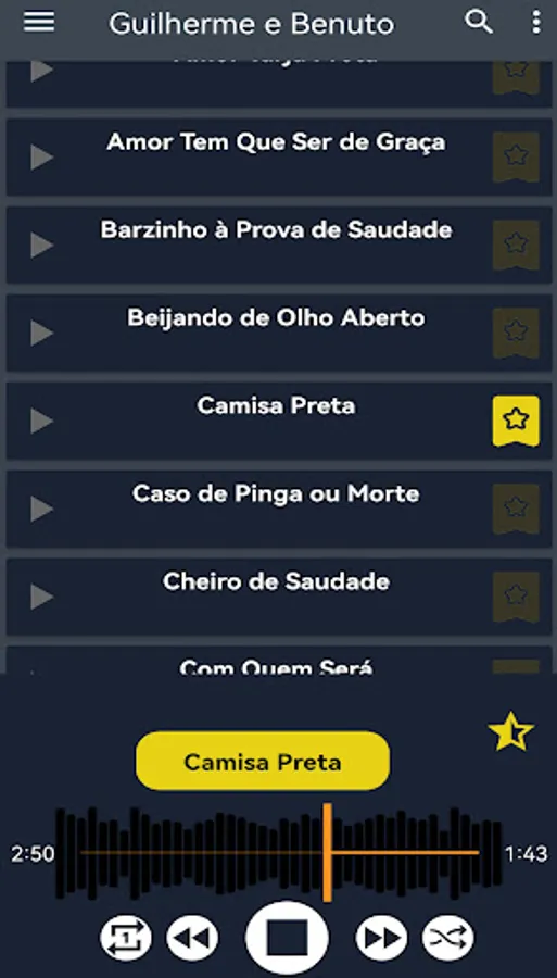 No aplicativo, você encontra todas as músicas do Guilherme e Benuto Sertanejas sem internet, elas foram criteriosamente selecionadas de acordo com as mais visualizadas e solicitadas