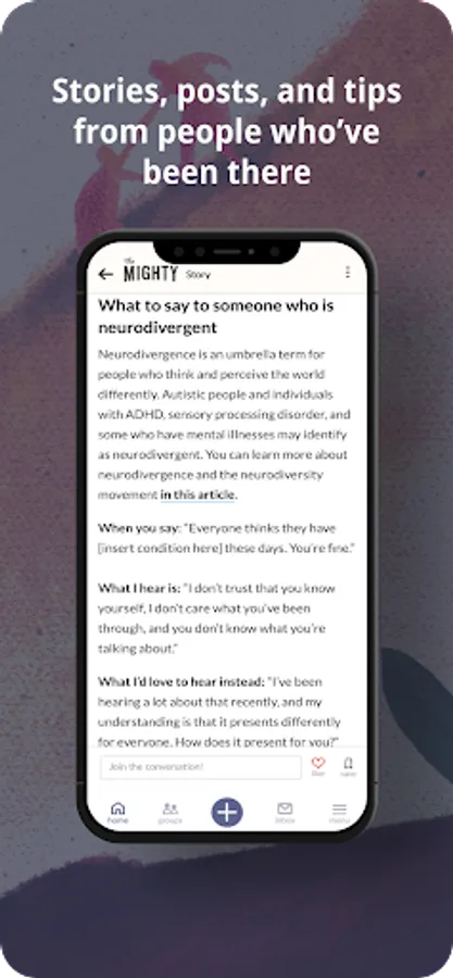 - Join a Mighty group and connect with like-minded people around health, hobbies, and similar interests