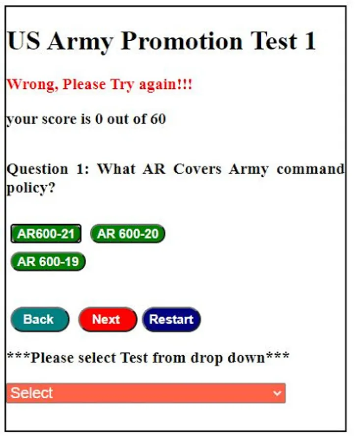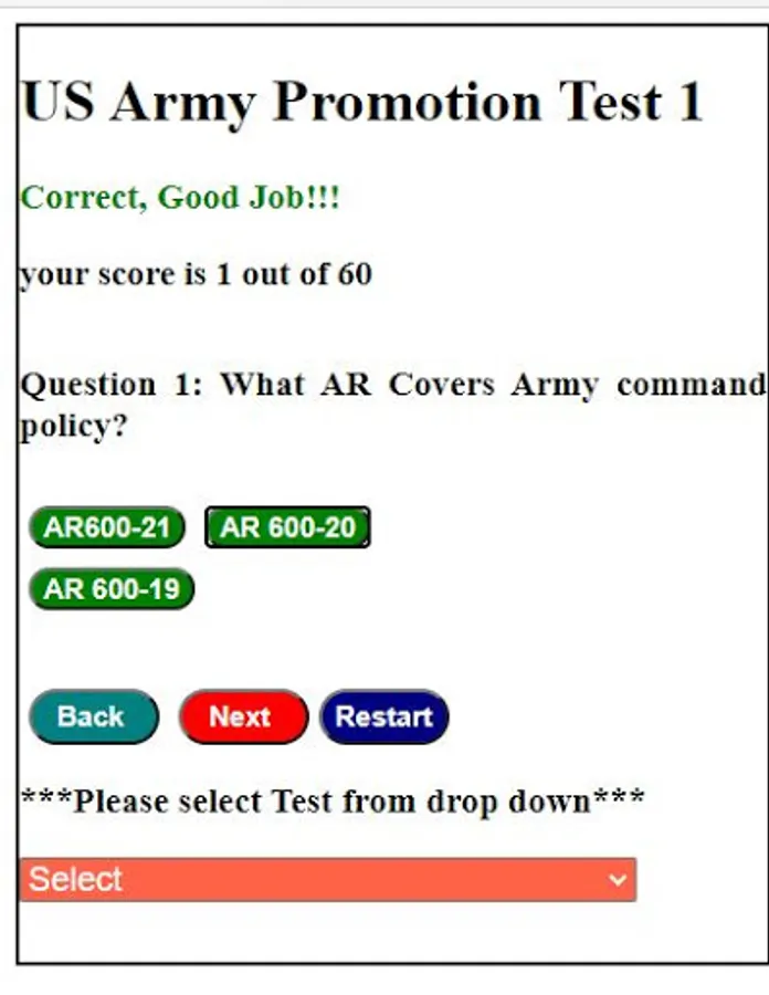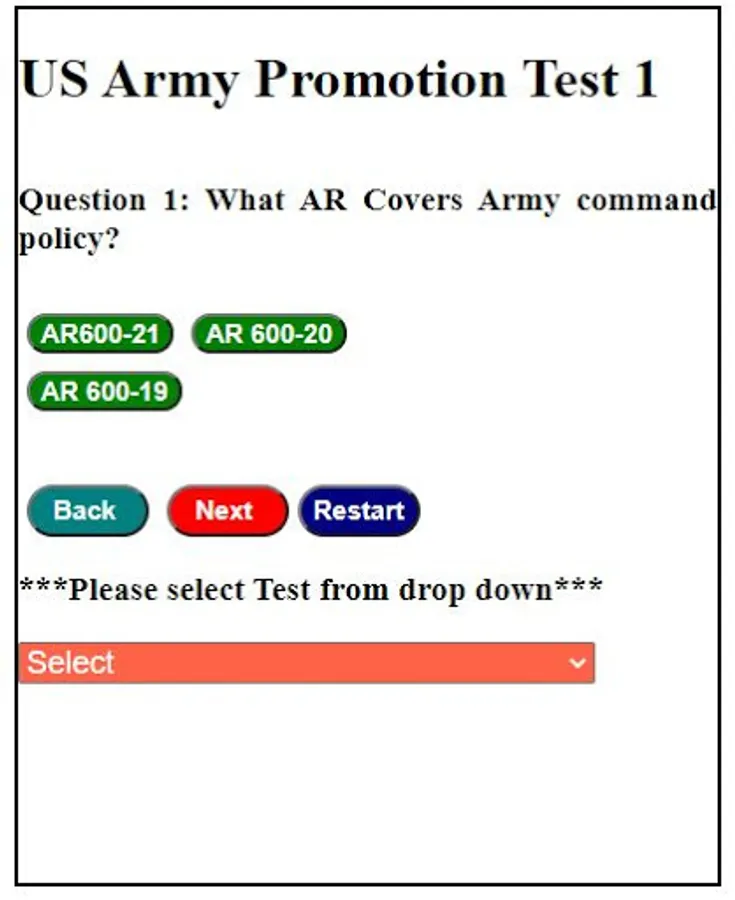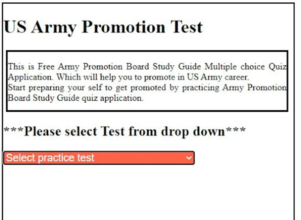 This is Free Army Promotion Board Study Guide Multiple choice Quiz Application. Which will help you to promote in US Army career.This Army Promotion Board Study Guide quiz application has two practice test. Both are multiple choice practice test. So what are you waiting for? start preparing your self to get promoted by practicing Army Promotion Board Study Guide quiz application.