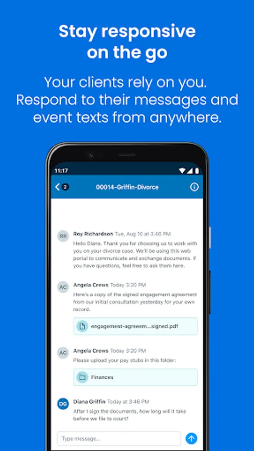 ・ Get instantly notified when a client messages you through the portal - or even texts - and respond directly from the app.