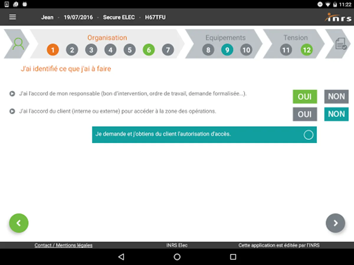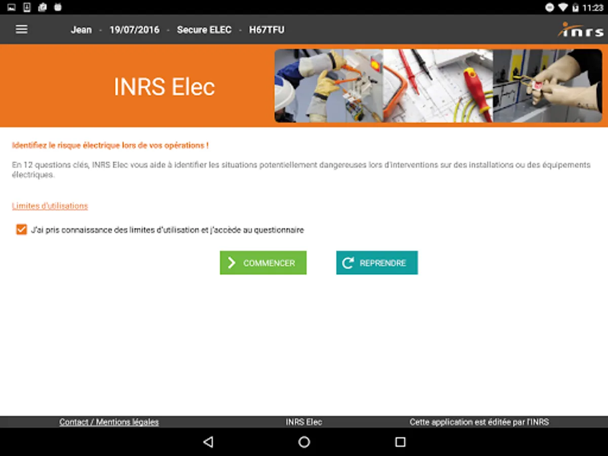 The use of this application does not replace the risk assessment provided by the labor code; it falls under the employer's responsibility to assess the risks to the health and safety of workers and to implement the necessary preventive measures covering the technical, human and organizational. The employer must verify the adequacy of the measures recommended with the specifics of the operation and add the steps required by the risk assessment other than electricity. The measures and recommendations proposed by INRS Elec application does not apply to work on installations or energized equipment.