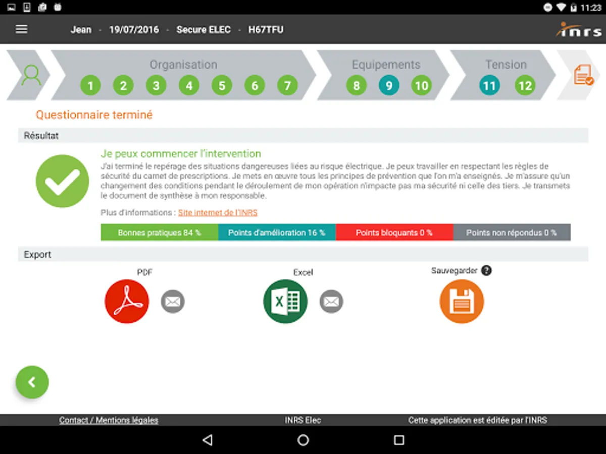 The application is used during power order operations on industrial and commercial installations. The user responsible for the intervention the information just before you start the operation. At the end of the questionnaire, it gets an assessment of potential risks specifically related to the planned intervention. The application also generates a summary of the responses which can be saved or transmitted in PDF or Excel format.