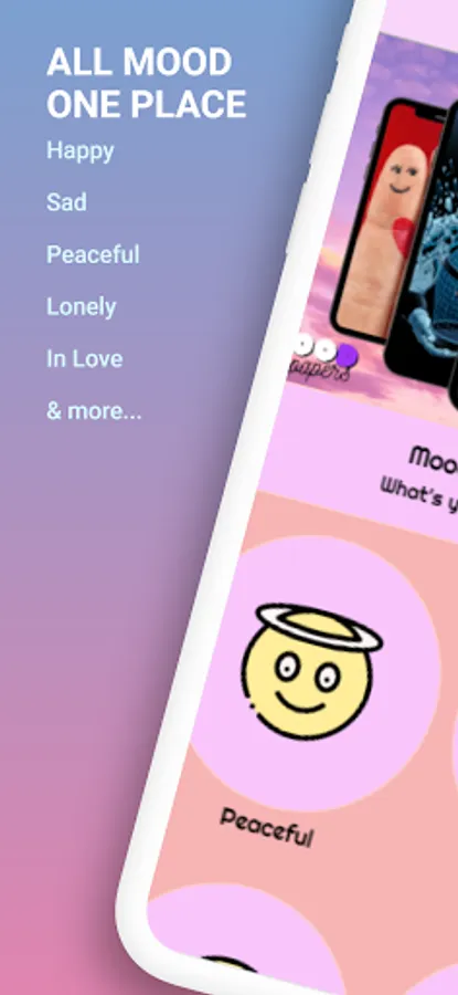 This is the first Mood wallpaper app with amazing collection that you actually can choose phone wallpaper according to your current mood; Happy, Sad, Peaceful, Random, Lonely, In Love, and many more!