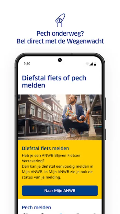 • Continue Cycling insurance. Report the theft of your bicycle easily via the app and set the investigation team to work at the touch of a button (only for members with an ANWB Stay Cycling Bicycle Insurance).