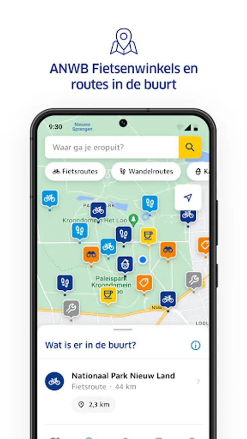The ANWB Eropuit app is a handy guide to going out in the Netherlands. From cycling and walking routes to outings, you will find plenty of inspiration and information here.