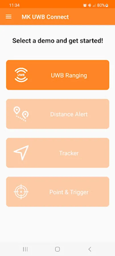 MK UWB Connect is the companion application for the MK UWB Kit Mobile Edition 2.0. It is designed to showcase several UWB demos in a very intuitive way. These demos, such as UWB Ranging, Distance Alert, Tracker and Point & Trigger, allow the user to experiment with the benefits of integrating UWB technology in mobile applications to obtain accurate, real-time location measurements.