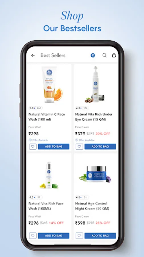 Face Care: Choose from a variety of clinically tested effective ranges like vitamin c, green tea, vita rich, age control range, etc to address specific skin types and build your skincare routine. Face serum, face wash, face cream, face scrub, aloe vera gel, face toner, under eye cream for dark circle, sunscreen, lip balm- we have it all on our app.