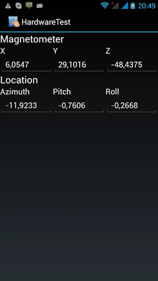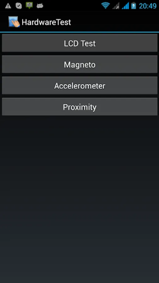 Use this App to test your LCD Display, Magnetic, Accelerometer, Proximity and Light sensors.