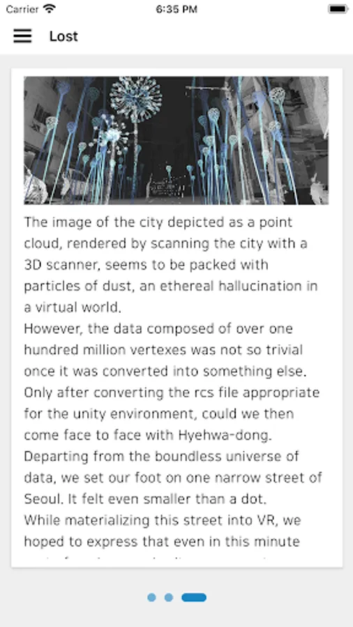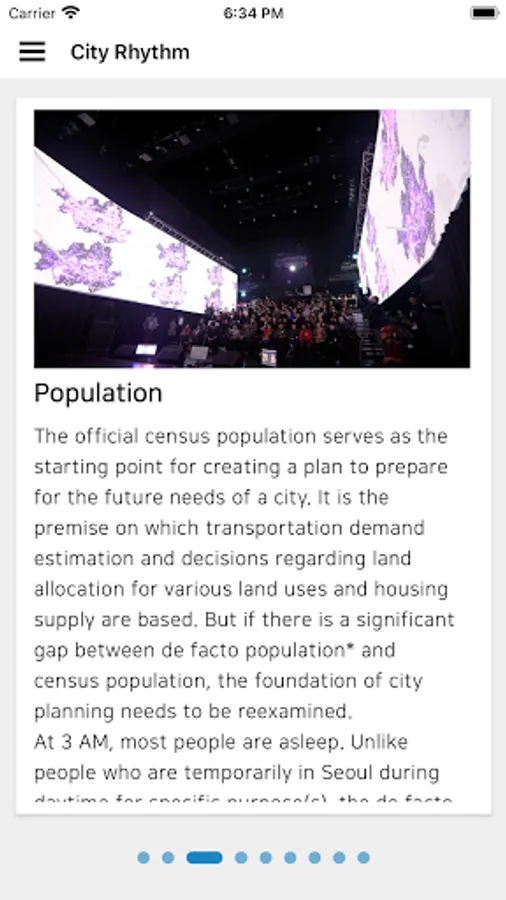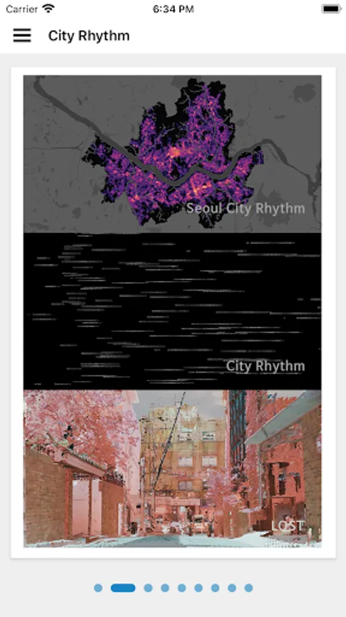 [City Rhythm] is an image that records movement in a city. It is a visualization work that expresses how our movements in the city are recorded in sound, dots, and space using big data. It was selected as the best work in 2018 Kocca.