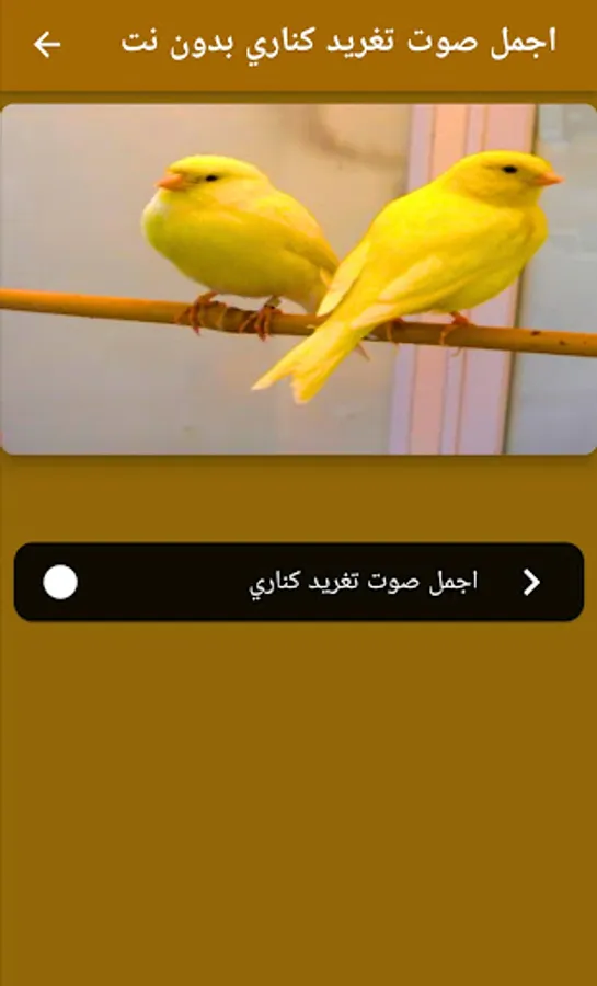 Canary sounds without the net The application features an easy-to-use and attractive user interface, where users can choose between a group of different sounds and play them with a single click. The most beautiful song of canaries without the net. The application is also characterized by high quality of sound, which provides users with an enjoyable and realistic listening experience for the sounds of canaries.