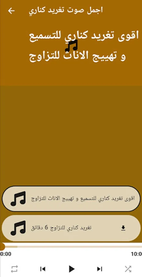 A variety of audio recordings: The application contains a variety of audio recordings of canary sounds of various types, the voice of a female canary for mating, allowing users to choose the sound that suits them and likes the voice of a female canary mp3