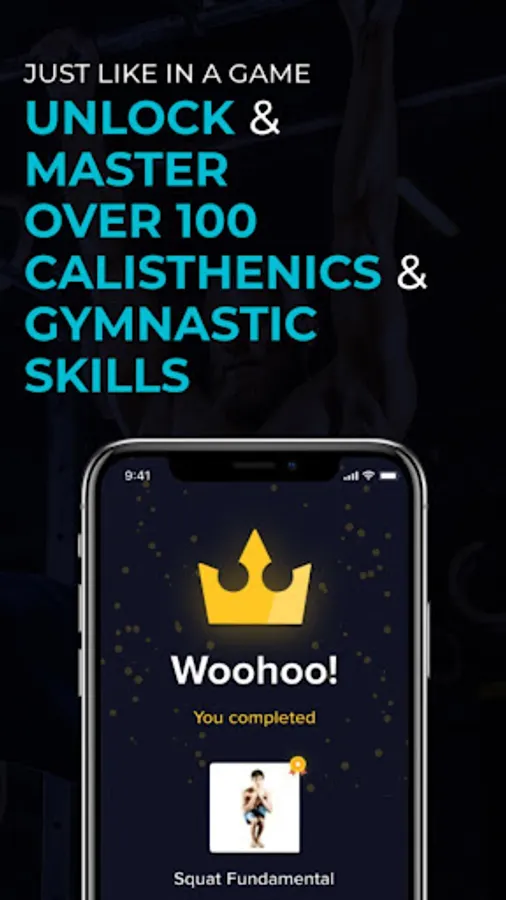 All that while mastering over 100 amazing calisthenics & gymnastics skills like handstands, planches, levers, muscle-ups and more.